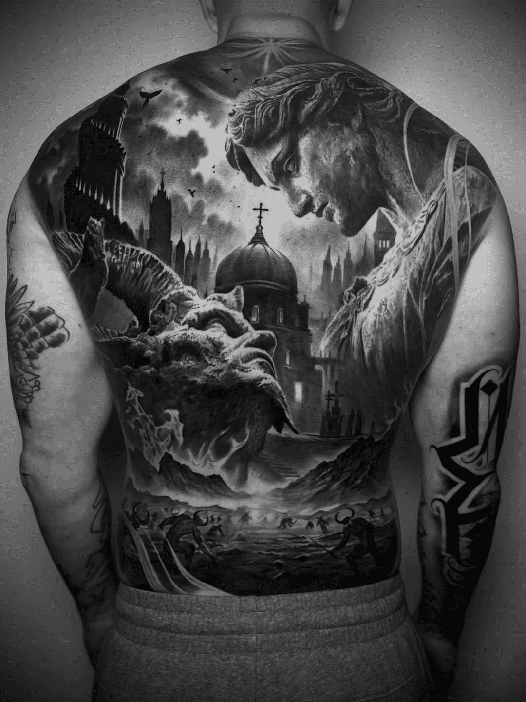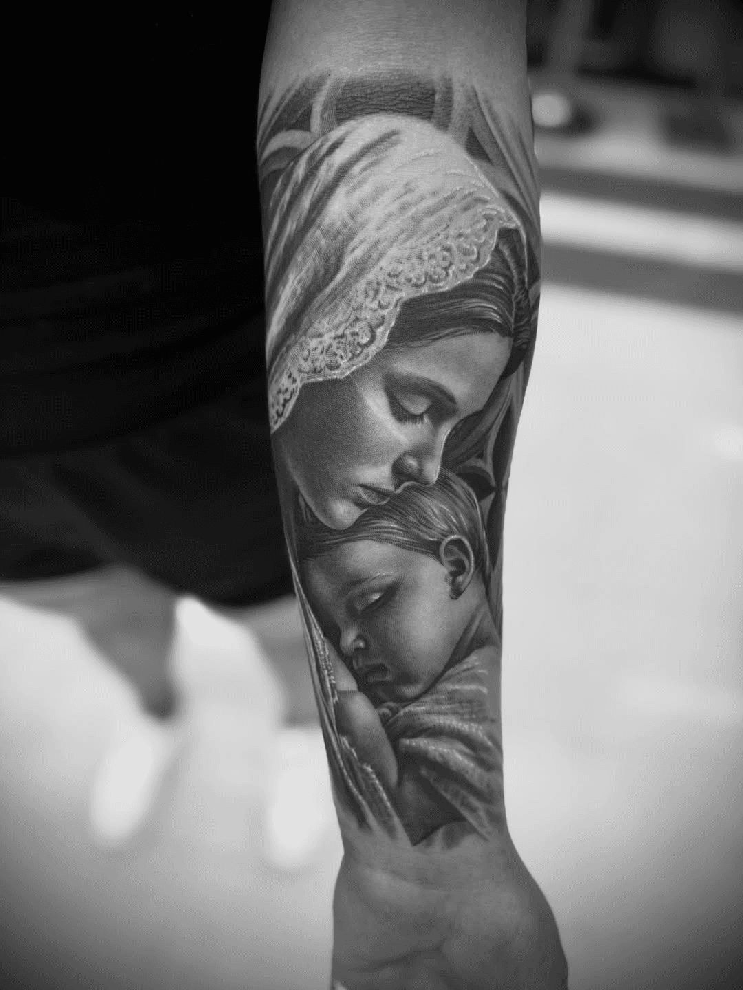 There's not a ton of really good black & gray realism artists in my area to choose from who I thought could do my vision of what I wanted justice, and I ended up finding out about A.J. Harber from Mystic Images in Noblesville, Indiana. I couldn't have been any happier with the result. Hopefully you guys enjoy the outcome of it as much as I do. <3